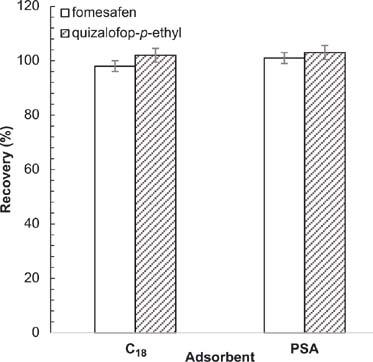 Table 4. Recoveries and RSDs for fomesafen and quizalofop-p-ethyl in azuki bean.