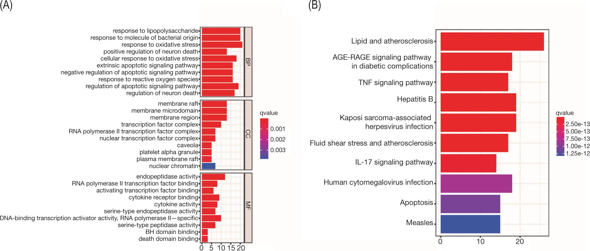 The most common diabetic complication is cardiovascular and cerebrovascular diseases. Many studies have proved that TNF signaling pathway had a critical role in various diabetic complications. TNF apoptosis, as well as inflammation, and TNF cells are major mediators of inflammation and immunity, and are associated with the pathogenesis of several human diseases. TNF mainly includes TNF-β and TNF-α, which are secreted by T lymphocytes and macrophages, respectively. TNF-α can increase endothelial inflammation and AS by mediating the NF-κB pathway and is involved in the development of AS (Chen and Goeddel, 2002; Gao et al., 2016).