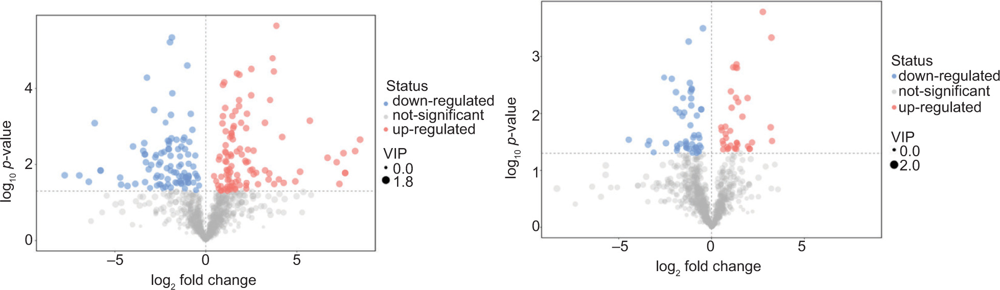 | Compound name | VIP | FC | log2FC | Compound name | VIP | FC | log2FC | |