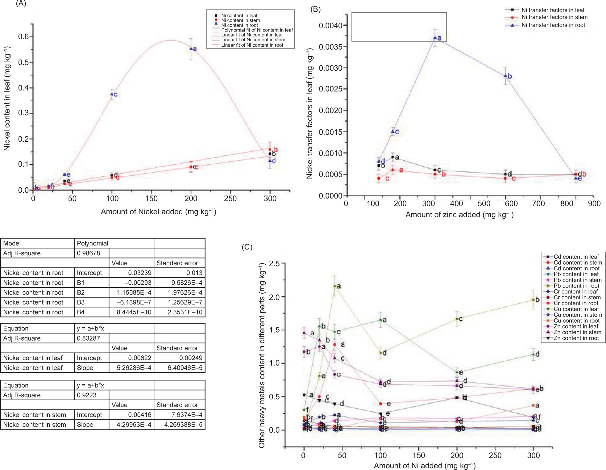 Table 2. Effects of different amounts of added Cd, Pb, Cr, Cu, Zn, and Ni on the growth biomass of Brassica chinensis L.