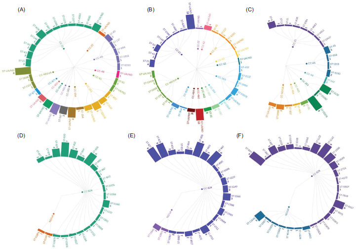 | C. coli | Swine | CC-828 (85%, 61/72) ND (15%, 11/72) ST-854 (CC-828, 13%, 9/72) ST-1142 (CC-828, 13%, 9/72) ST-1122 (CC-828, 8%, 6/72) ST-1556 (CC-828, 8%, 6/72) ST-8517 (CC-828, 8%, 6/72) ST-887 (CC-828, 7%, 5/72) ST-11645 (ND, 7%, 5/72) ST-2699 (CC-828, 6%, 4/72) ST-1016 (CC-828, 4%, 3/72) ST-1058 (CC-828, 4%, 3/72) ST-1096 (CC-828, 3%, 2/72) ST-1450 (ND, 3%, 2/72) ST-2733 (CC-828, 3%, 2/72) ST-10874 (CC-828, 3%, 2/72) ST-1068 (CC-828, 1%, 1/72) ST-4172 (CC-828, 1%, 1/72) ST-4606 (ND, 1%, 1/72) ST-10668 (ND, 1%, 1/72) ST-10826 (ND, 1%, 1/72) ST-10877 (ND, 1%, 1/72) ST-10879 (CC-828, 1%, 1/72) ST-10928 (CC-828, 1%, 1/72) |
