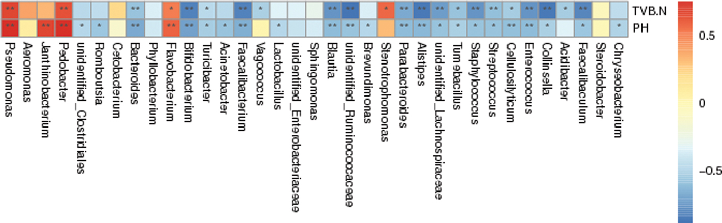 Pedobacter was generally isolated from soils, water, compost, sludge, glaciers, chilled food, fish and other extreme environments (Viana et al., 2018). Pedobacter could produce neutral phytases to improve nutrient digestibility and performance in crucian carp, whereas some Pedobacter are associated with soil or plant-pathogenic nematodes (Bahram et al., 2018; Nie et al., 2017). In freeze-dried Agaricus bisporus, Pedobacter was one of the dominant bacteria (Yang et al., 2019).Pedobacter is prevalent in some fishes (Davis et al., 2016; Rasheeda et al., 2007), but there is no evidence to show that it is associated with the spoilage of fish. In this article, Pedobacter increased gradually, and it was positively correlated with pH and TVB-N. However, its spoilage potential needs to be studied in the future.