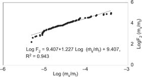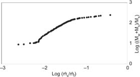 Figure 4. Variations of Log (ṁs/ṁf) versus Log ((Mw+Ms)/Ms).