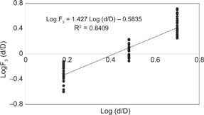 To obtain Log F3 (d/D), (Equation 11) was used: