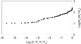 Figure 9. Log (Mw/(Ms+Mw) versus Log (F1F2F3F4).
