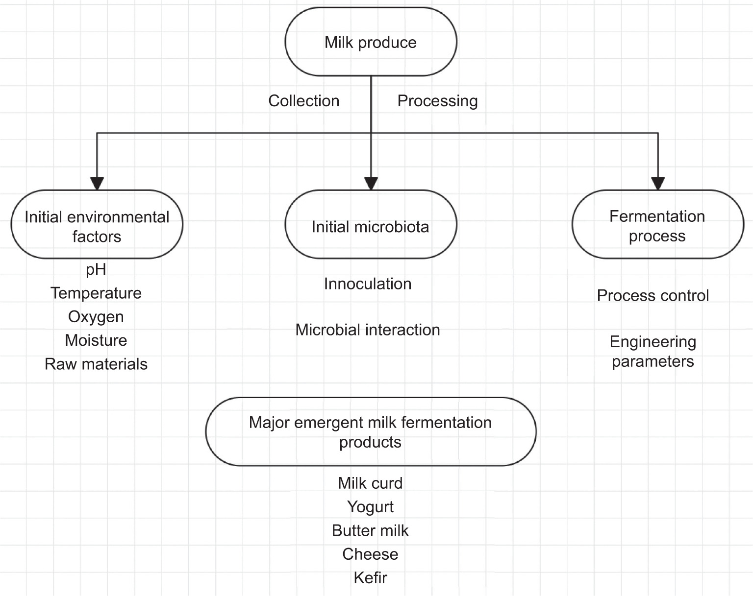 Figure 3. Major factors/key players in the milk fermentation process, and emergent products.