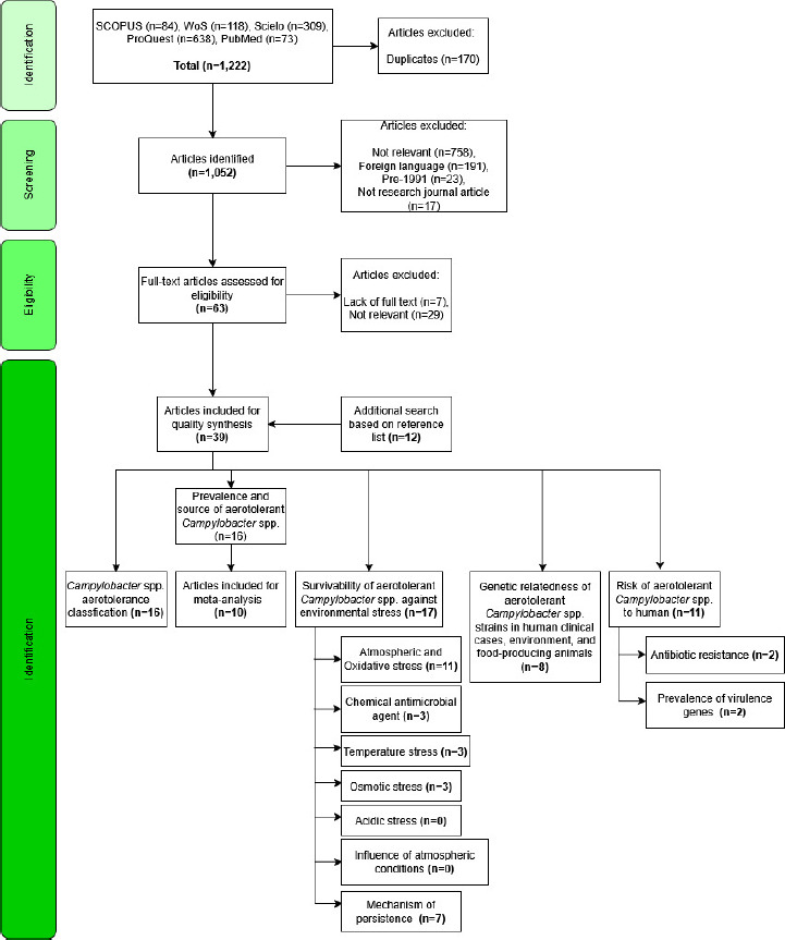 The inclusion criteria considered articles linking Campylobacter spp. to aerotolerance. No limitations were imposed on geographic location and sample size. Only peer-reviewed research articles published in English were included.